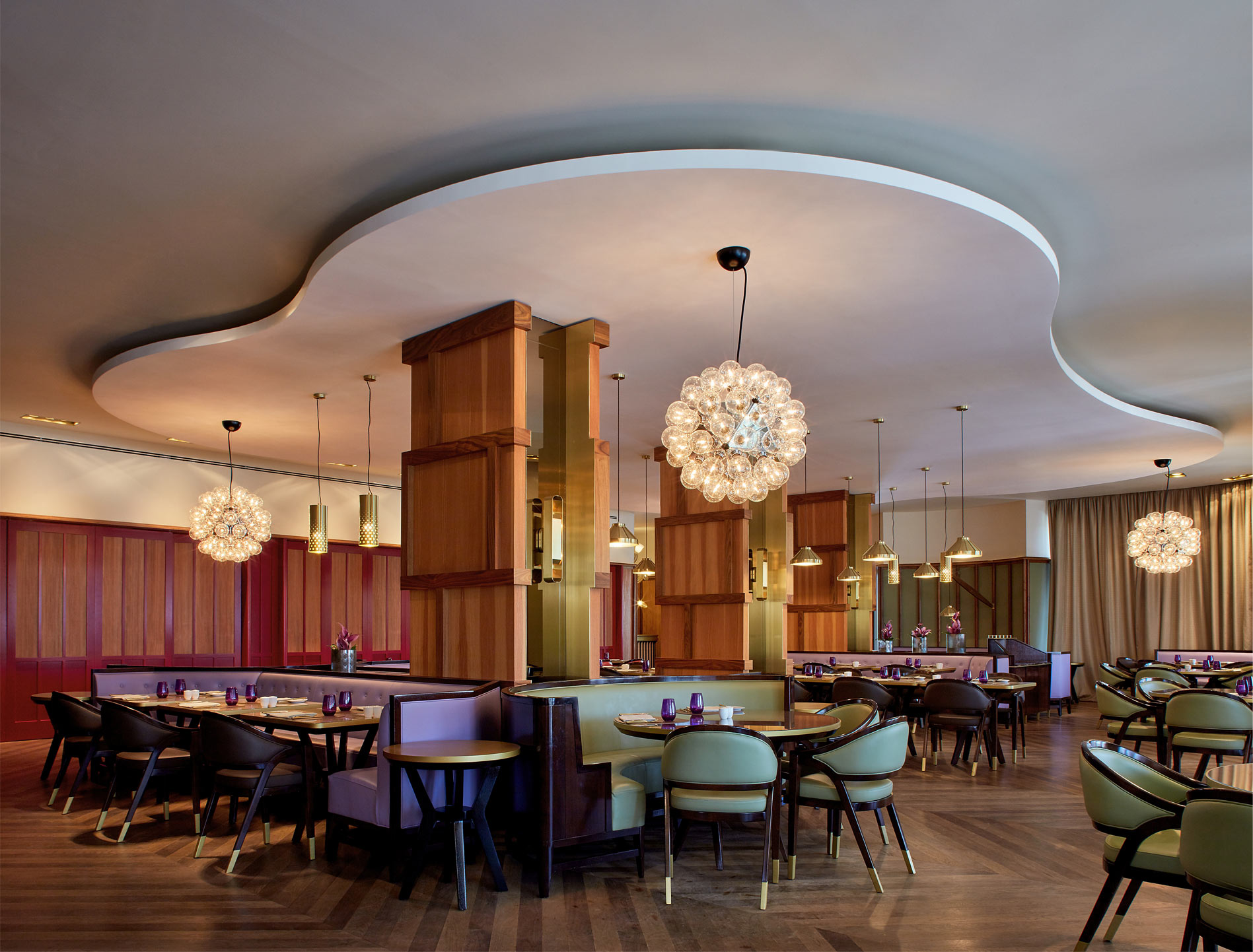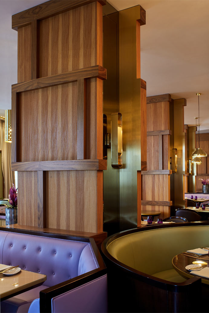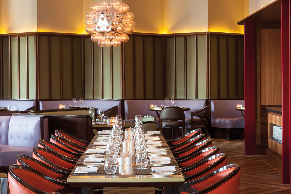 The design of the restaurant had to be suitable for airy and communal dining at breakfast while transforming into an intimate and convivial space through evening service.